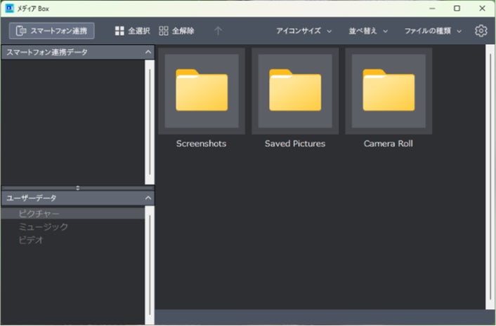 パソコンとスマホが同一のLAN/Wi-Fi環境に接続されていれば、スマホの画面に表示されるコードから、スマホ内の写真を”メディアBox”に転送できます。