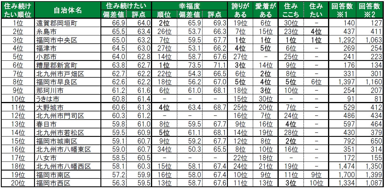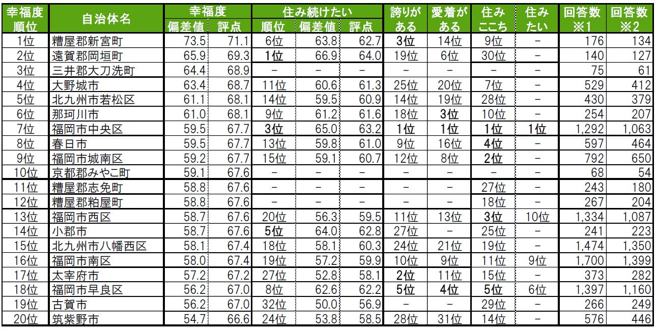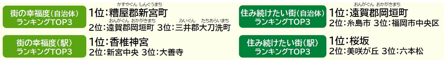 いい部屋ネット「街の幸福度 & 住み続けたい街ランキング2022<福岡県版>」(街の住みここちランキング特別集計)発表