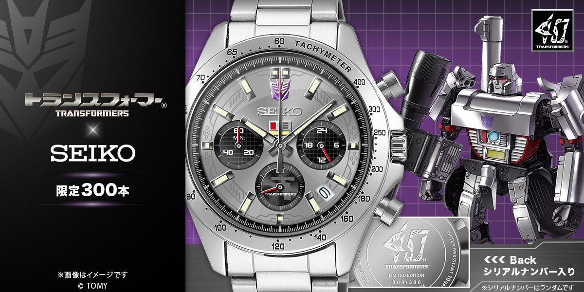 このたびの新作は、2024年に40周年を迎えた『トランスフォーマー』とセイコーのコラボレーションウオッチで、メガトロンのカリスマ性と『トランスフォーマー』の世界観を取り入れたデザインです。300本の数量限定、裏蓋には40周年記念ロゴとシリアルナンバーを刻印します。