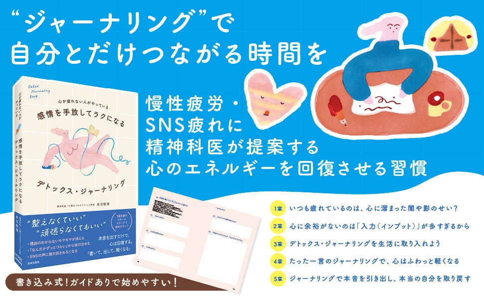 ぐちゃぐちゃな感情、全部書けばいい。心が疲れない人がやっている『感情を手放してラクになる デトックス・ジャーナリング』精神科医・長沼睦雄氏によるセルフケア本が3/24に発売!