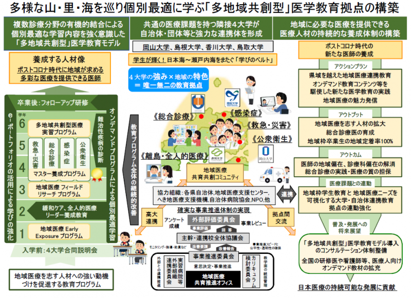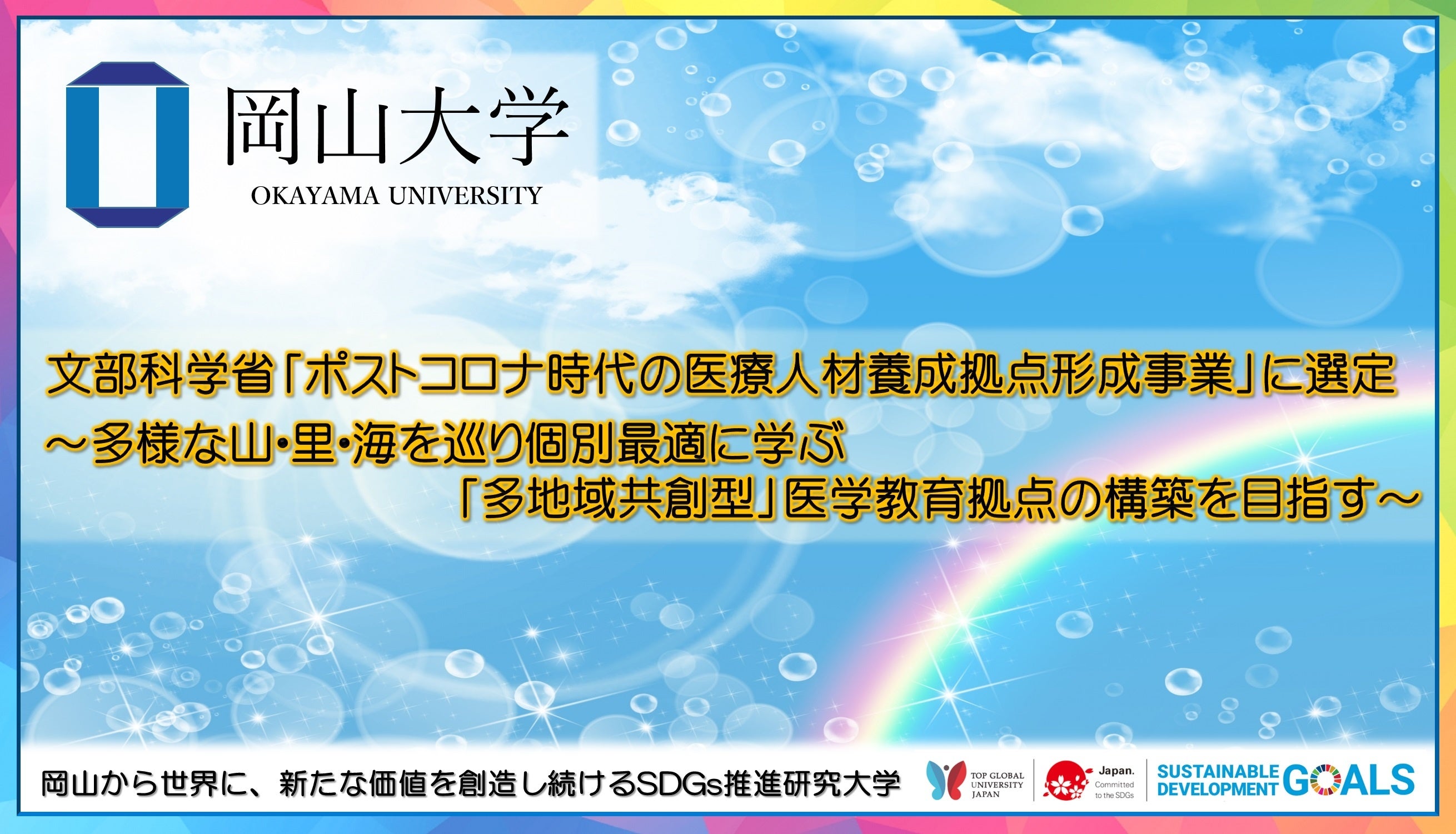 【岡山大学】文部科学省「ポストコロナ時代の医療人材養成拠点形成事業」に選定 ~多様な山・里・海を巡り個別最適に学ぶ「多地域共創型」医学教育拠点の構築を目指す~