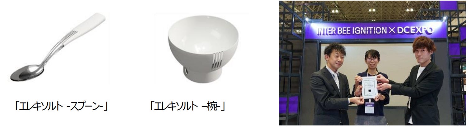 当社は、減塩に関する悩みを抱えるお客様が、おいしく生活習慣の改善ができるサービスの実現を目指し、この電流波形を用いた技術を搭載したスプーン、お椀型の「エレキソルト」デバイスを開発しました。現在2023年中の日本国内での発売を目指して、小売店舗やECサイト、社員食堂など、さまざまなチャネルでの需要性を確認する実証実験を展開しています。