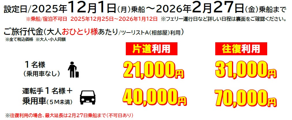冬限定のお得な船旅「ウインタープラン」を発売いたしました。