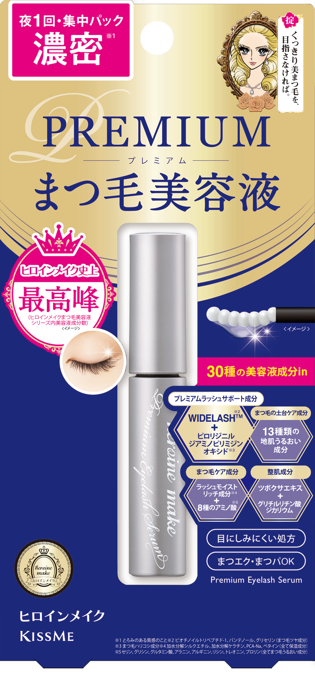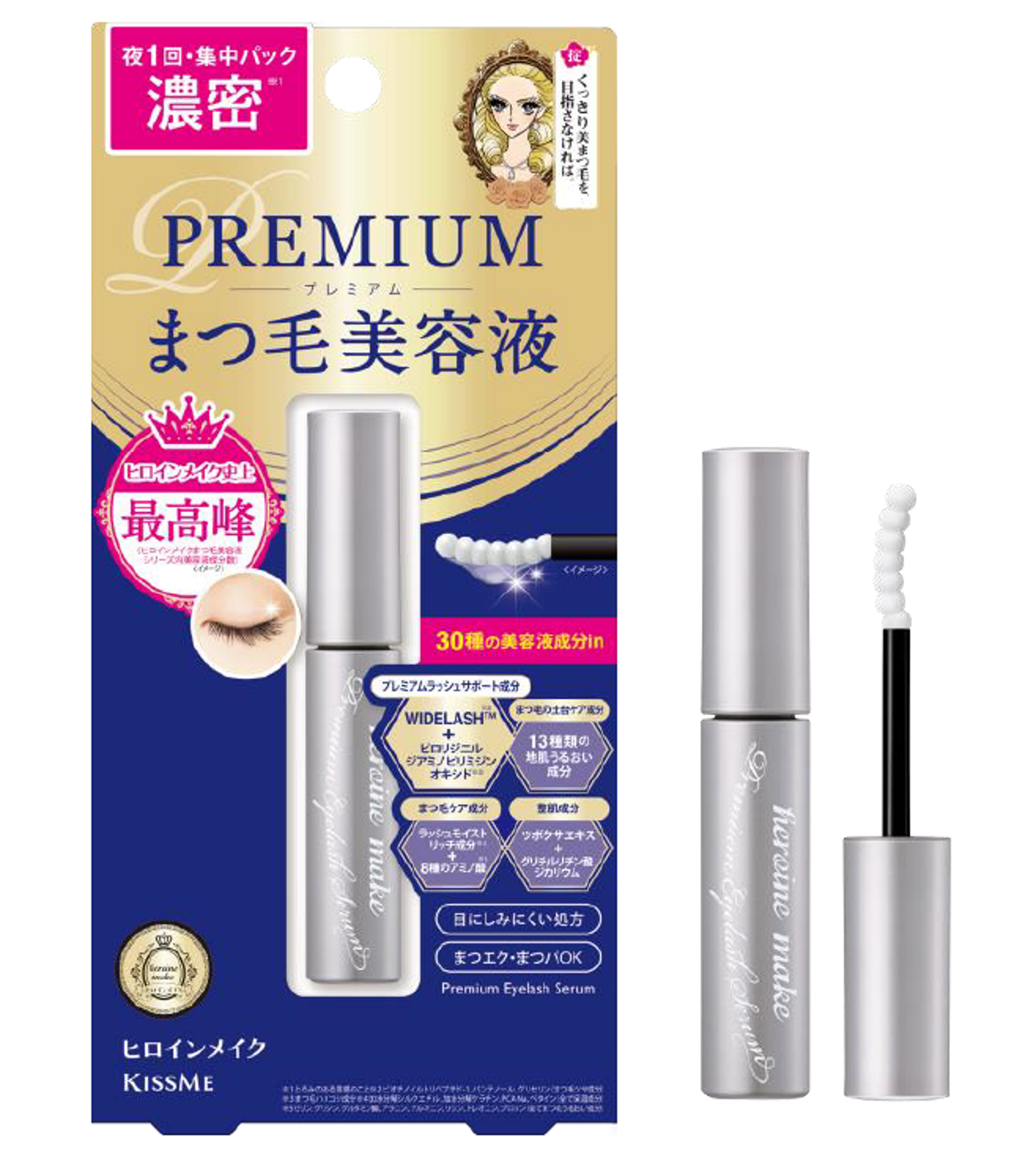 こだわりのまつ毛美容液成分を30種配合したプレミアムタイプが新登場。とろみのある濃密なテクスチャーの美容液がまつ毛を包み込むように密着し、