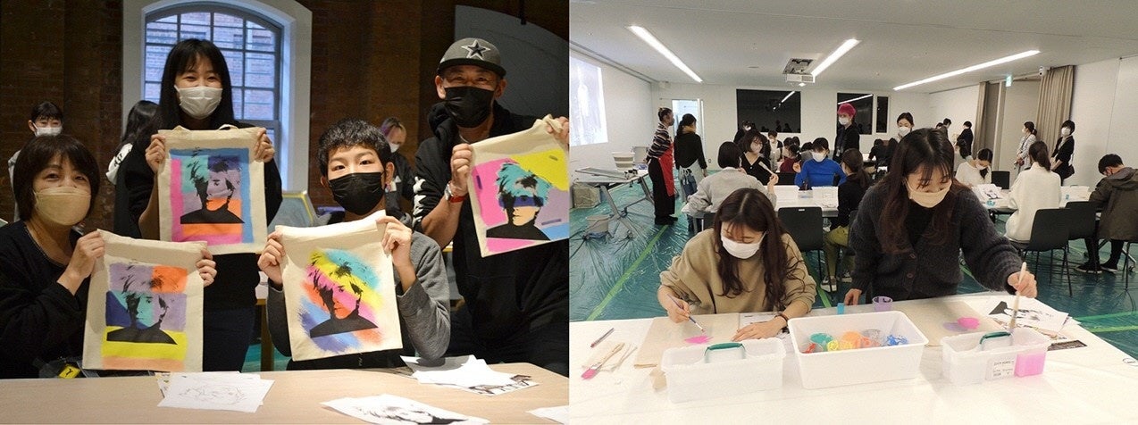 アンディ・ウォーホル美術館から特別に提供されるアンディ・ウォーホルの自画像などの版を使って、シルクスクリーンでオリジナルトートバックを制作します。作った作品はお持ち帰りいただけます。