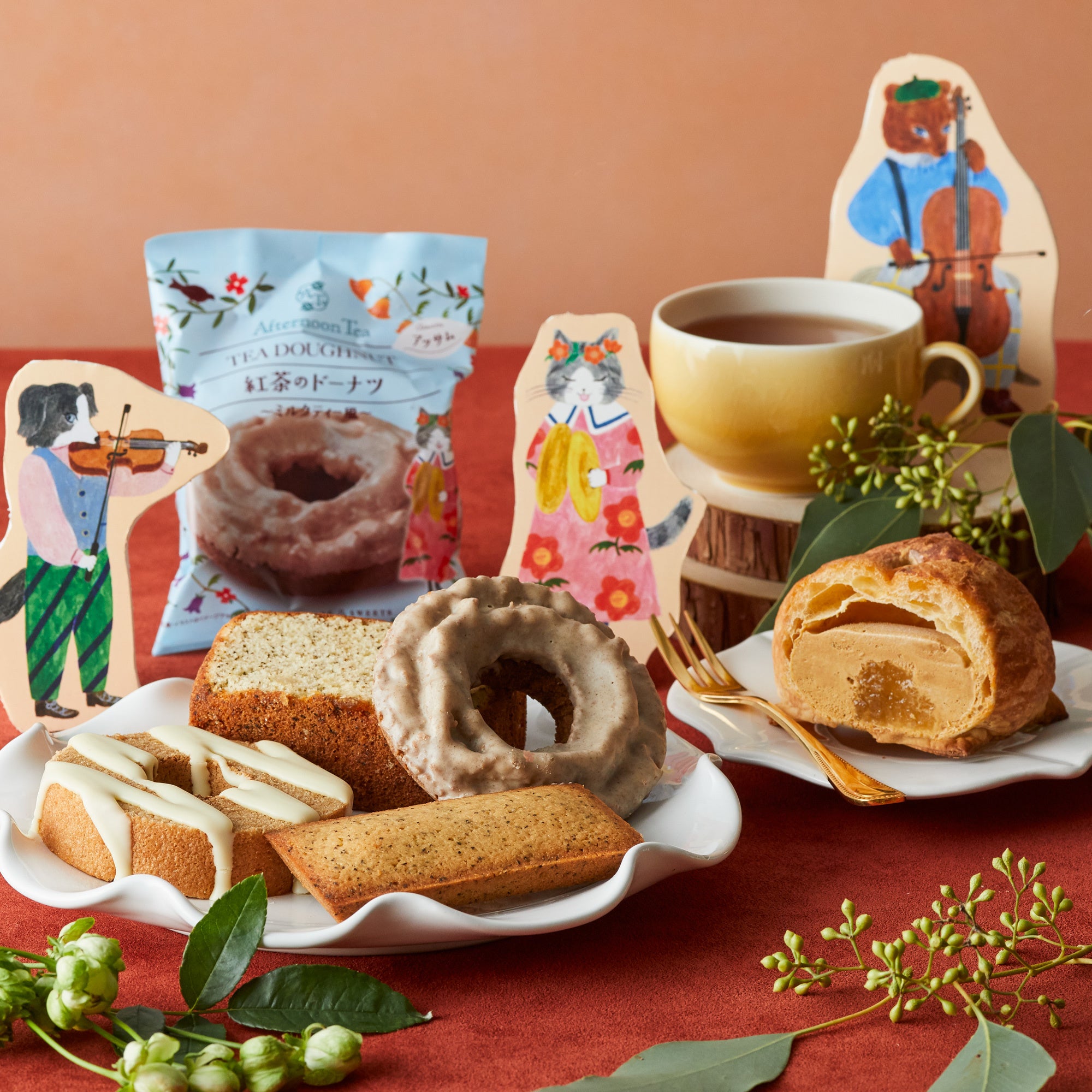 ミルクティーやレモンティー、ストレートティーと好きな紅茶を選ぶように楽しめるAfternoon Tea監修の焼き菓子4種。イラストレーター布川愛子さんが描いた“森の動物たちよる演奏会”をイメージしたオリジナルイラストによる限定パッケージで登場します。