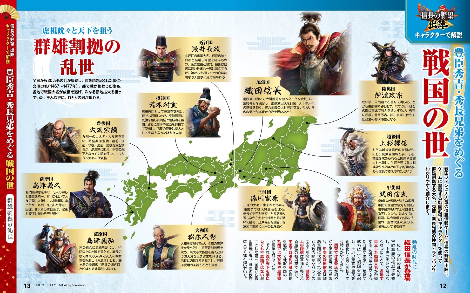 本書は、戦国ウォークゲーム『信長の野望 出陣』(Android/iOS)と連動した特別企画を巻頭で特集。『信長の野望 出陣』のキャラクタービジュアルと共に、秀長が駆け抜けた戦国の世をわかりやすく解説します。