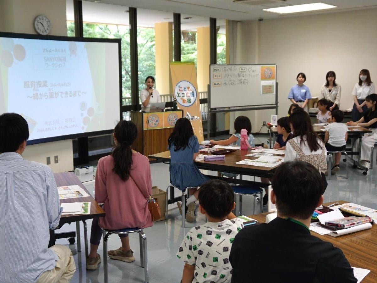 三陽商会は、2014年に、衣服を通じて豊かなこころを育む「服育活動」の一環として、 “服を長く大切に着るこころ”を育てる小学校での「服育授業」をスタートしました。2017年からは、当社が本社を構える新宿区内での取り組みとして、新宿中央公園内のエコギャラリー新宿(新宿区立環境学習情報センター)での環境イベントにも積極的に参画し、地域の子どもたちに向けた「服育授業」を行っています。新宿区における活動に加えて、2025年9月には初めて渋谷区内の小学校で、また同年12月には横浜市内の子ども会で出前授業を実施し、活動の場を広げています。