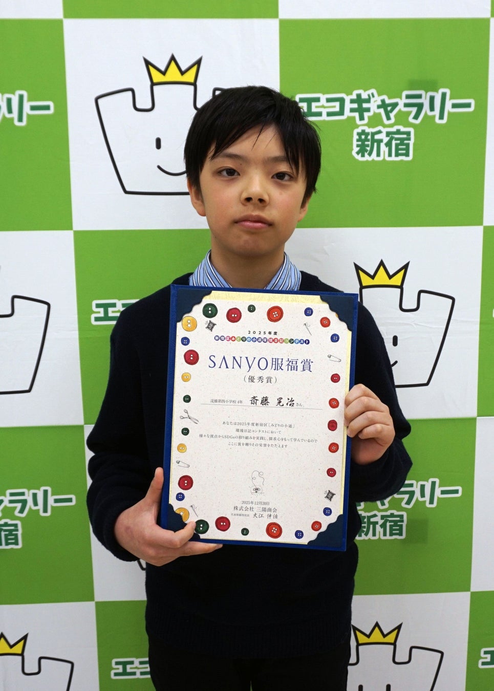 三陽商会は、エコギャラリー新宿(新宿区立環境学習情報センター)が主催する「新宿区『みどりの小道』環境日記コンテスト」に協賛し、2018年度から企業賞「SANYO服福賞」を設け、服や布に関する優れた環境日記を書いた小学生を表彰しています。