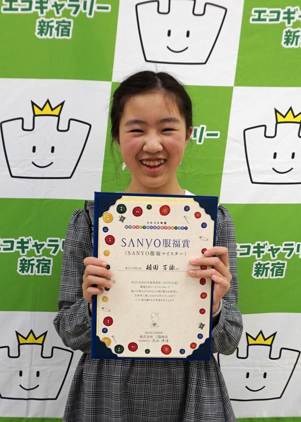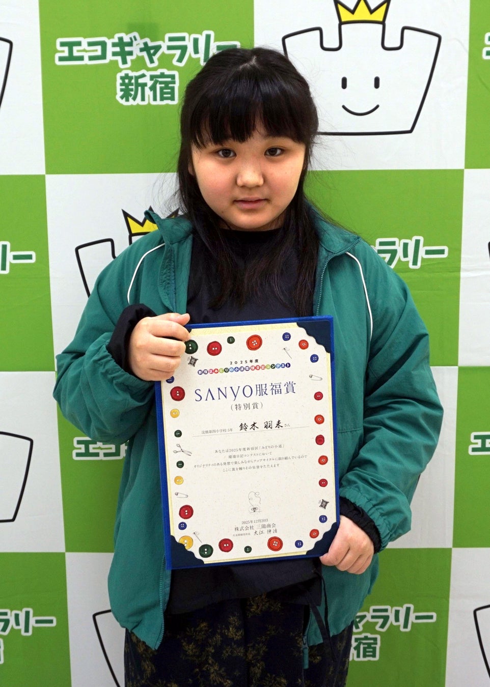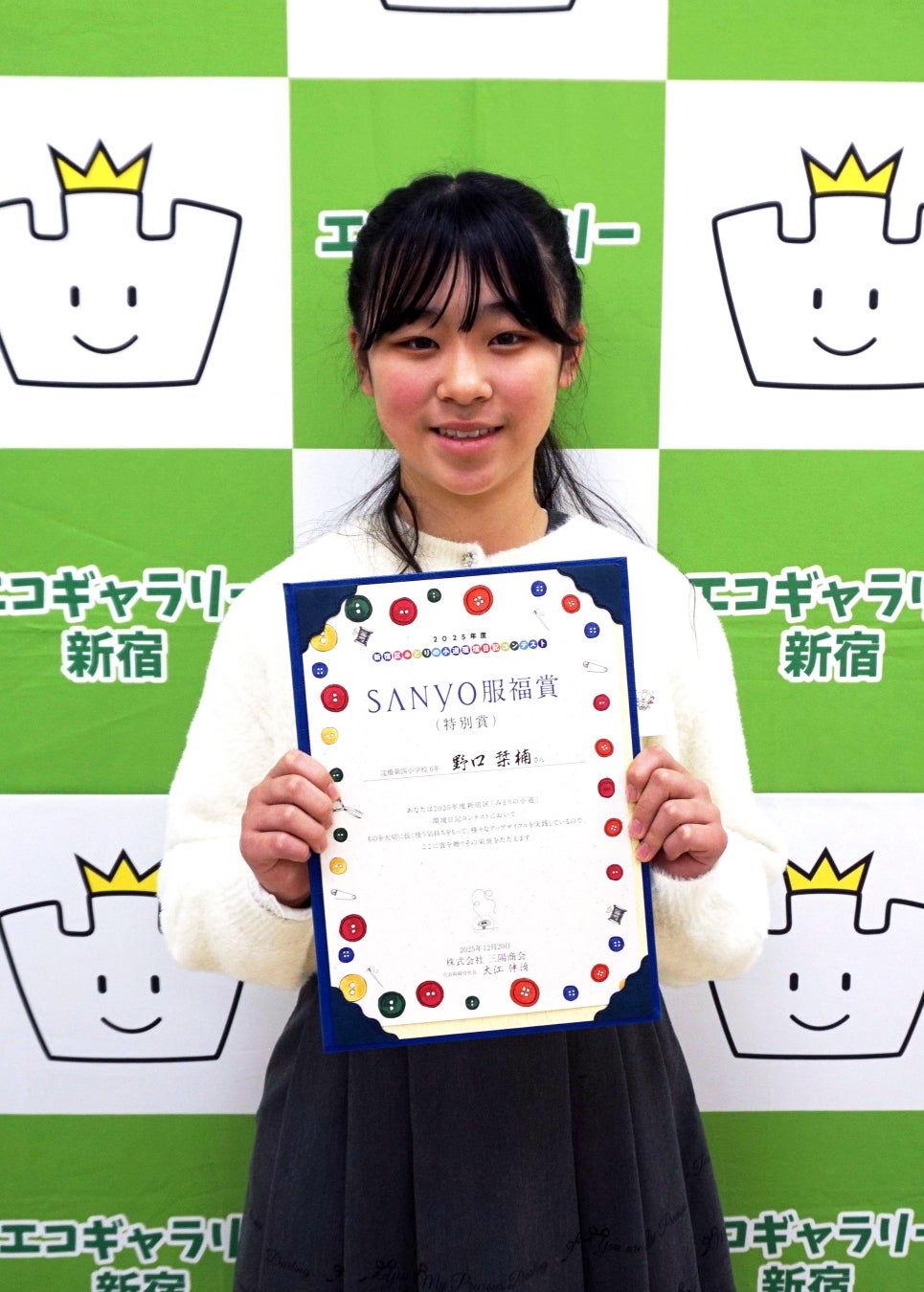 当社は、サステナビリティ活動「服育活動」の一環として、本社を構える新宿区内で活動する新宿区立環境学習情報センター及びNPO法人新宿環境活動ネットが新宿版として独自に展開している「新宿区『みどりの小道』環境日記コンテスト」に協賛してきました。2018年には企業として初めて企業賞「SANYO服福賞」を創設し、子どもたちが取り組んだ日記の中から服や布に関する優れた作品を表彰しています。2025年度は新宿区立小学校の児童を中心に環境日記約7,000冊が配布され、5週間以上取り組んだ日記を対象にしたコンテストには、区内20校より1,005点の応募がありました。