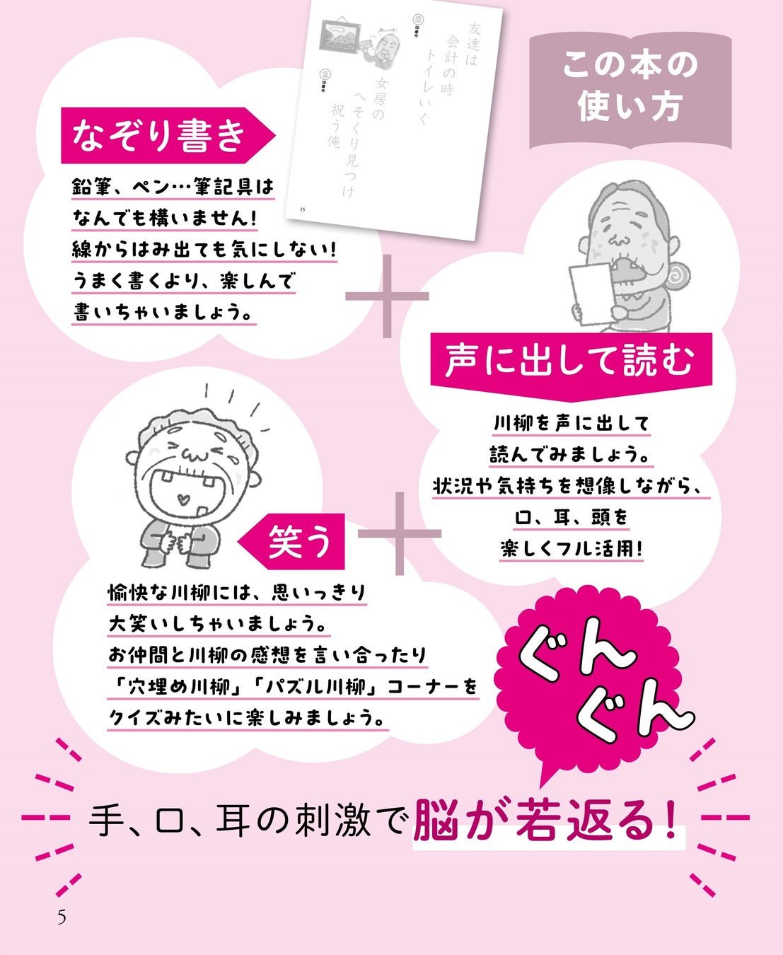 〈手、耳、口の刺激で脳がぐんぐん若返る、まったく新しい脳トレ!〉傑作シルバー川柳を「なぞり書き+大声で音読=大笑い!」、『脳活シルバー川柳』が、10月15日発売。