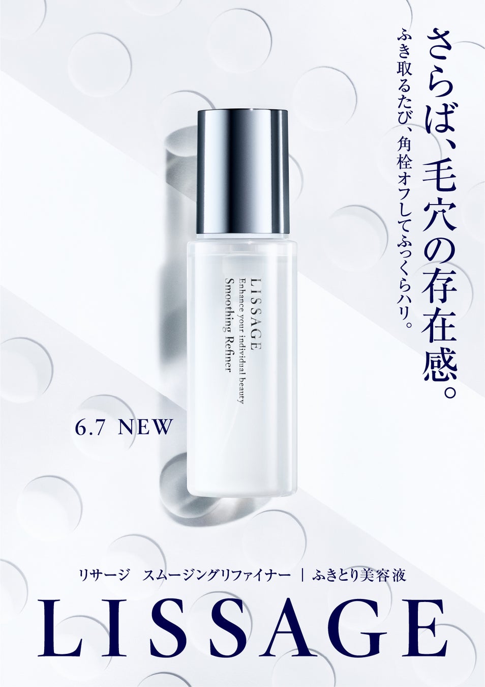 肌をうるおすコラーゲン研究を40年以上積み重ね、個肌に寄り添ってきた『LISSAGE(リサージ)』から、毛穴悩みが本格化する季節に、角栓をオフしながら、ふっくらハリのある美肌に導くふきとり美容液「スムージングリファイナー」を、2025年6月7日(土)に発売いたします。