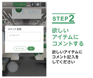 ・デジタル空間においてコメントを書き込める機能も実装し、他の人とのコメント共有や、より細かいニーズをコメントできます。また他の人のコメントを参考に、部品を指定することもできます。この機能により、鉄道古物の需要をより詳細に調査でき、今までにはなかった新しい部品を購入できる機会の提供を目指します。