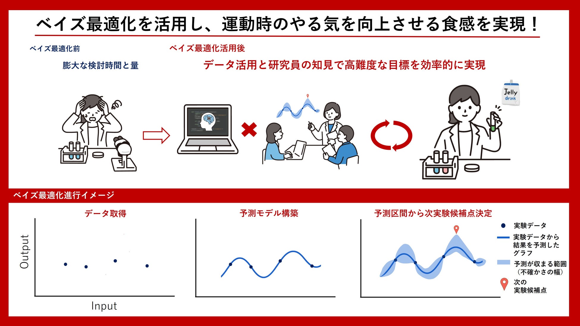 今後はゼリー飲料だけでなく様々な製品開発に本手法を応用し、その成果を通じてお客様に喜んでいただける品質をお届けできるよう努めてまいります。