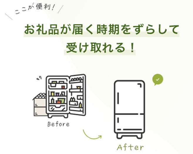 「さとふるのあとから選べるお礼品」を使えば好きなタイミングでお礼品を選ぶことができるので、お礼品の届く時期が集中してしまい保管場所に困ることがありません。