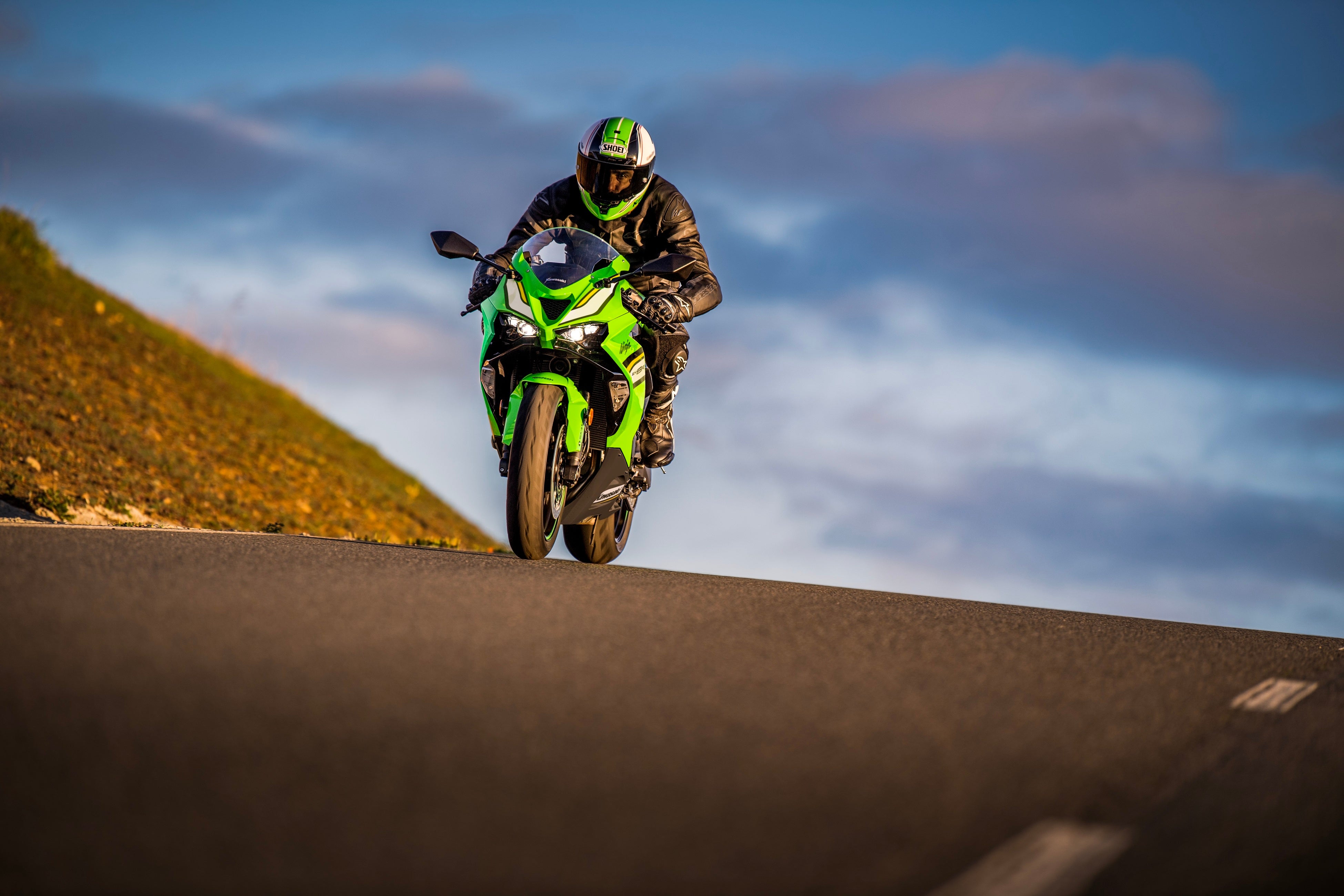 +37㎝³のアドバンテージがゆとりのパフォーマンスを生み出すNinja ZX-6R。エンジンと車体をストリートでの走行性能に最適化することで、様々なライディングシーンで爽快なライディングを楽しめます。さらにKQS(カワサキクイックシフター)、KTRC(カワサキトラクションコントロール)、パワーモード選択、KIBS(カワサキインテリジェントアンチロックブレーキシステム)などの高度なライダーサポート技術を搭載。レイヤー(積層)構成のカウリングや、鋭い眼光を放つLEDヘッドライトなどを装備し、新世代Ninjaにふさわしいアップデートを行いました。KRT EDITIONの車体デザインにはスーパーバイク世界選手権で戦う最新のNinja ZX-10RRをイメージしたカラーリングを採用。Ninjaデザインのスタイリングと共に、よりアグレッシブな雰囲気を演出しています。
