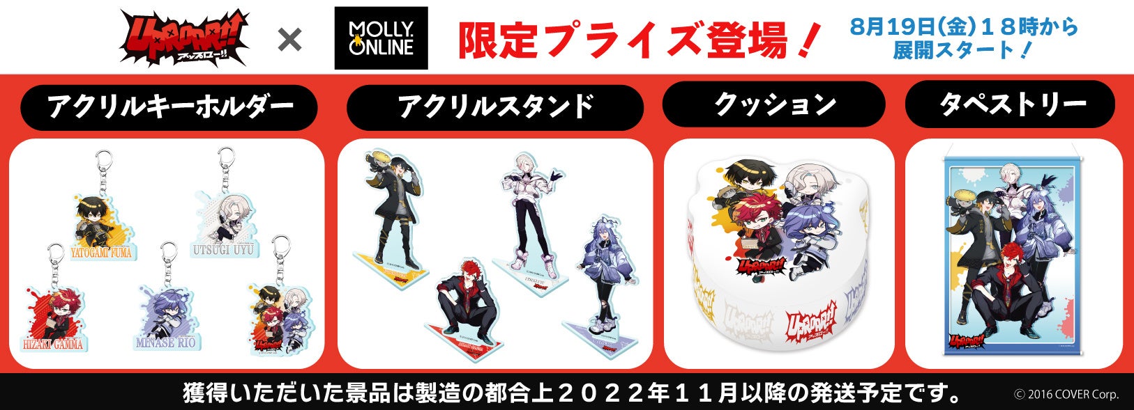 男性VTuberグループ「ホロスターズ」所属ユニット《UPROAR!!》と、オンラインクレーンゲーム「MOLLY.ONLINE」とのコラボグッズを展開開始!
