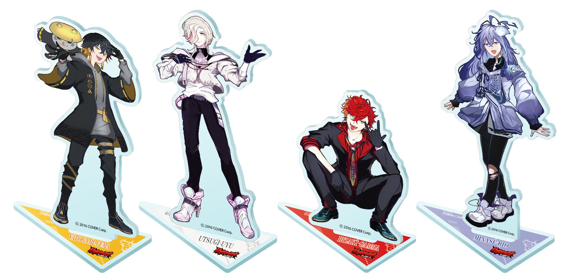 ▼アクリルスタンド(組み立て時高さ「夜十神封魔」12.3cm、「羽継烏有」12.8cm、「緋崎ガンマ」8.7cm、「水無世燐央」13cm)全4種