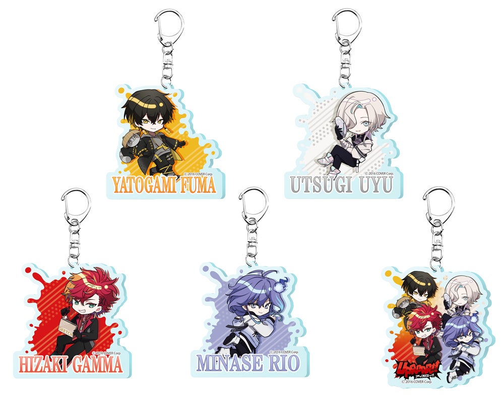 描き下ろしの単独・ユニットイラストがデザインされた、クッション、タペストリー、アクリルスタンド、アクリルキーホルダー、の4アイテム計11種類です。コラボプライズ各アイテムの等身イラストは緋崎ガンマが描き下ろしを担当、デフォルメイラストはイラストレーターの藤咲レオさんが描き下ろした限定デザインとなっています。