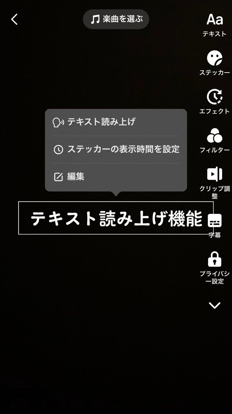 3. 入力したテキストをタップし、「テキスト読み上げ」をタップすると使用可能