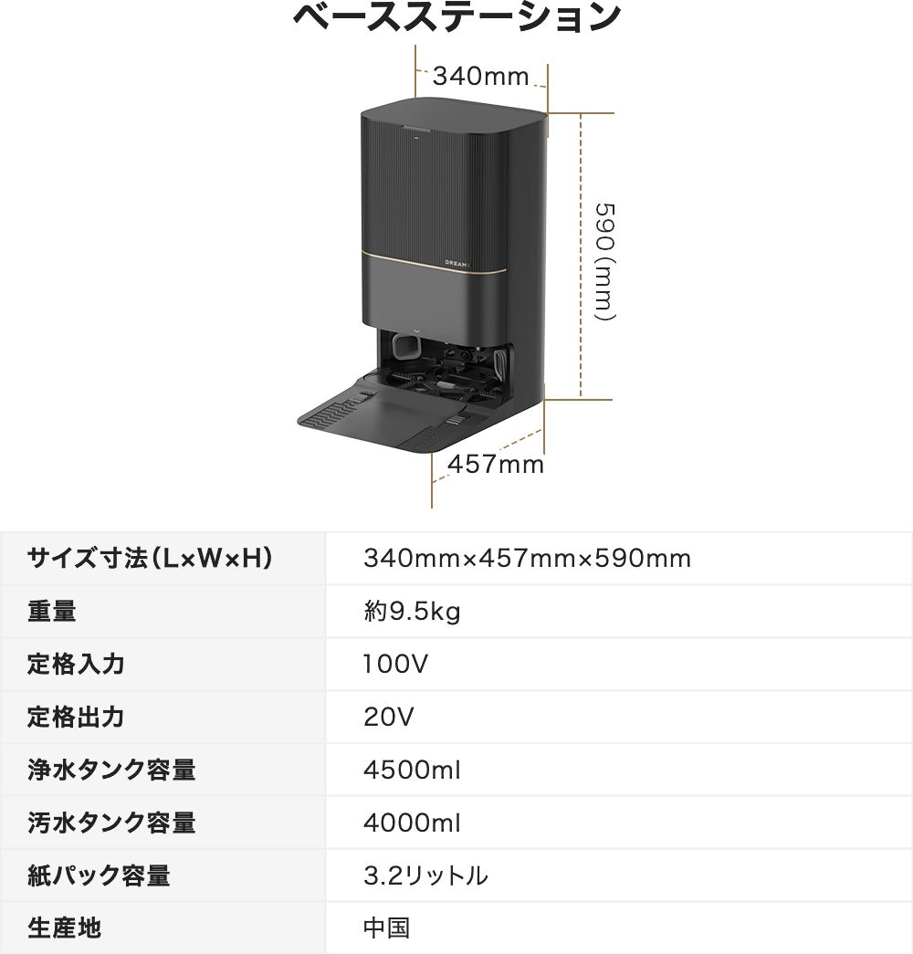 業界初の「ベースステーション自動洗浄」を搭載したDreameは、掃除からお手入れまでを完全に全自動で実現。手を一切煩わせず、最先端の機能が全て揃った、今までのロボット掃除機とは一線を画す機能性を提供しています。