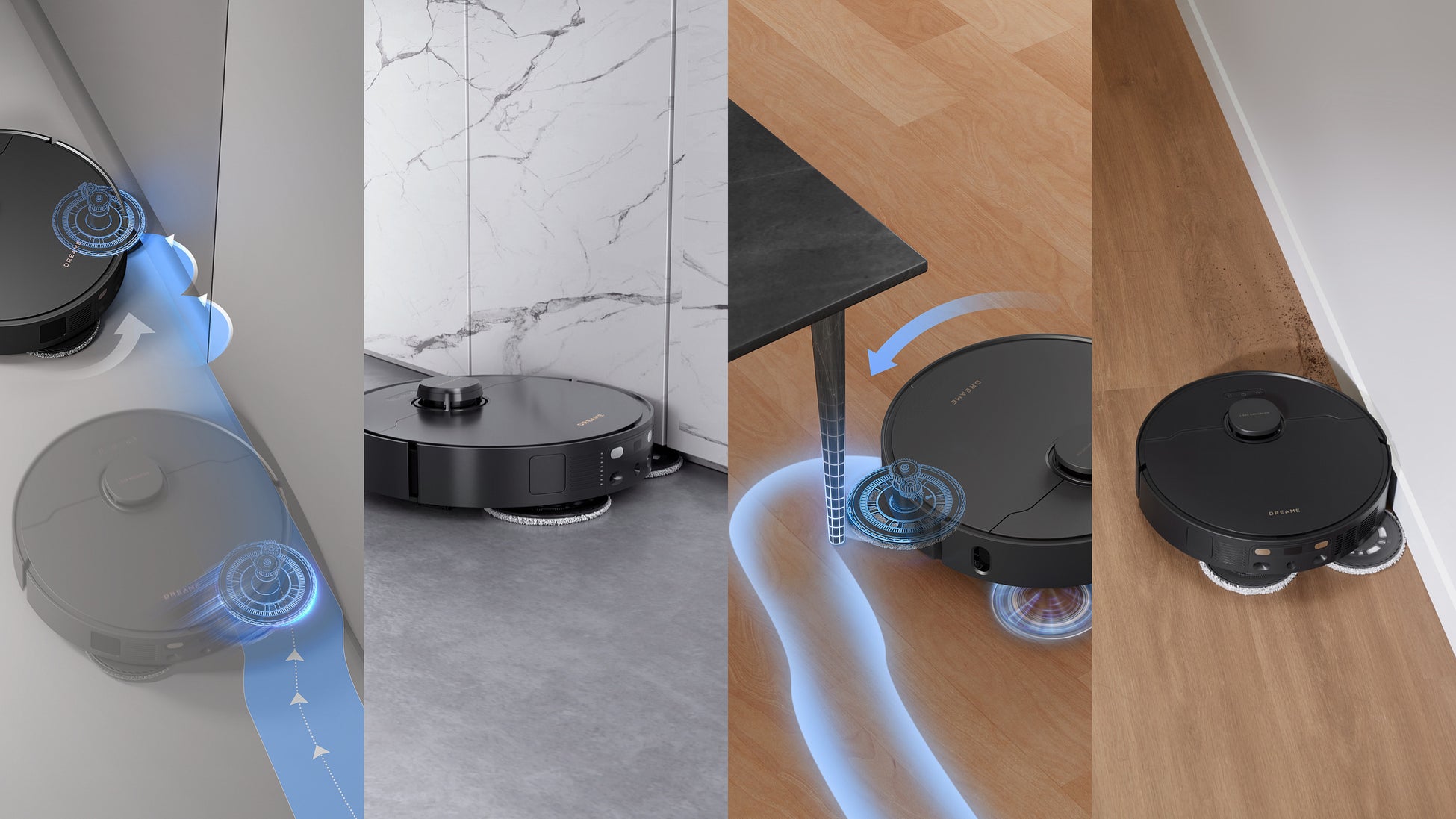 モップエクステンド技術(MopExtend Technology)は主に壁際などロボット掃除機では清掃が難しい箇所にアプローチが可能となるDreame 独自研究開発された技術です。今回新たにモップエクステンドロボスウィングテクノロジー(MopExtendRoboswing Technology)により更なる進化を遂げました。X30 Ultra はモップの拡張