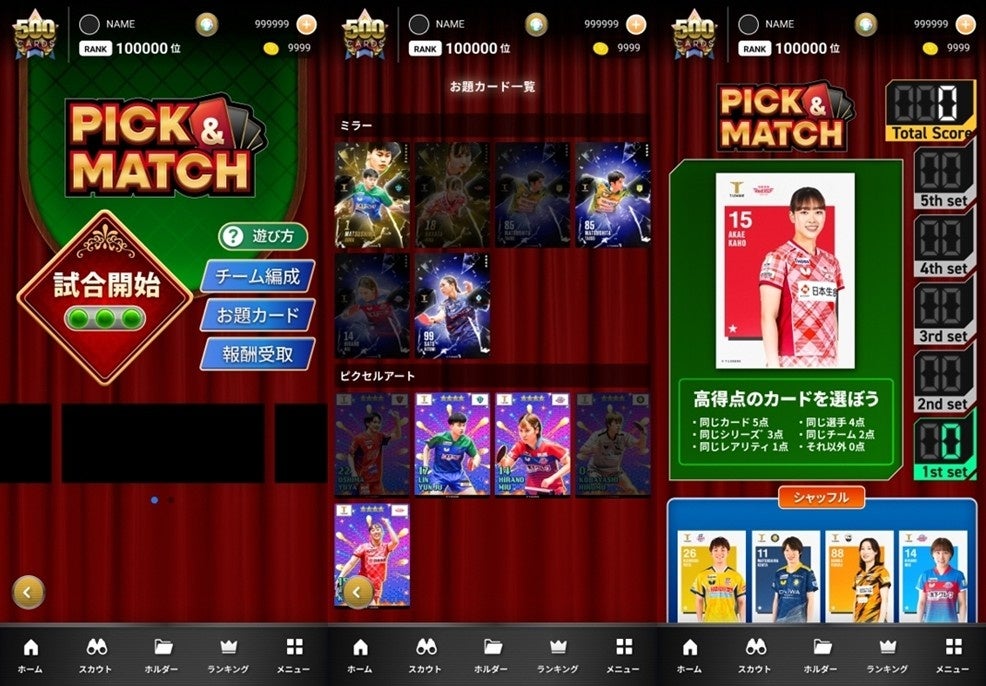 Tリーグ公式「T.LEAGUE OFFICIAL DIGITAL CARD」 新機能「PICK & MATCH」登場!集めたカードを使うミニゲームで遊び方が拡大!!