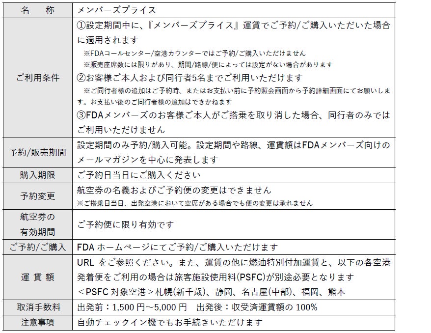 FDA 【FDAメンバーズ会員限定運賃】『メンバーズプライス』の販売について