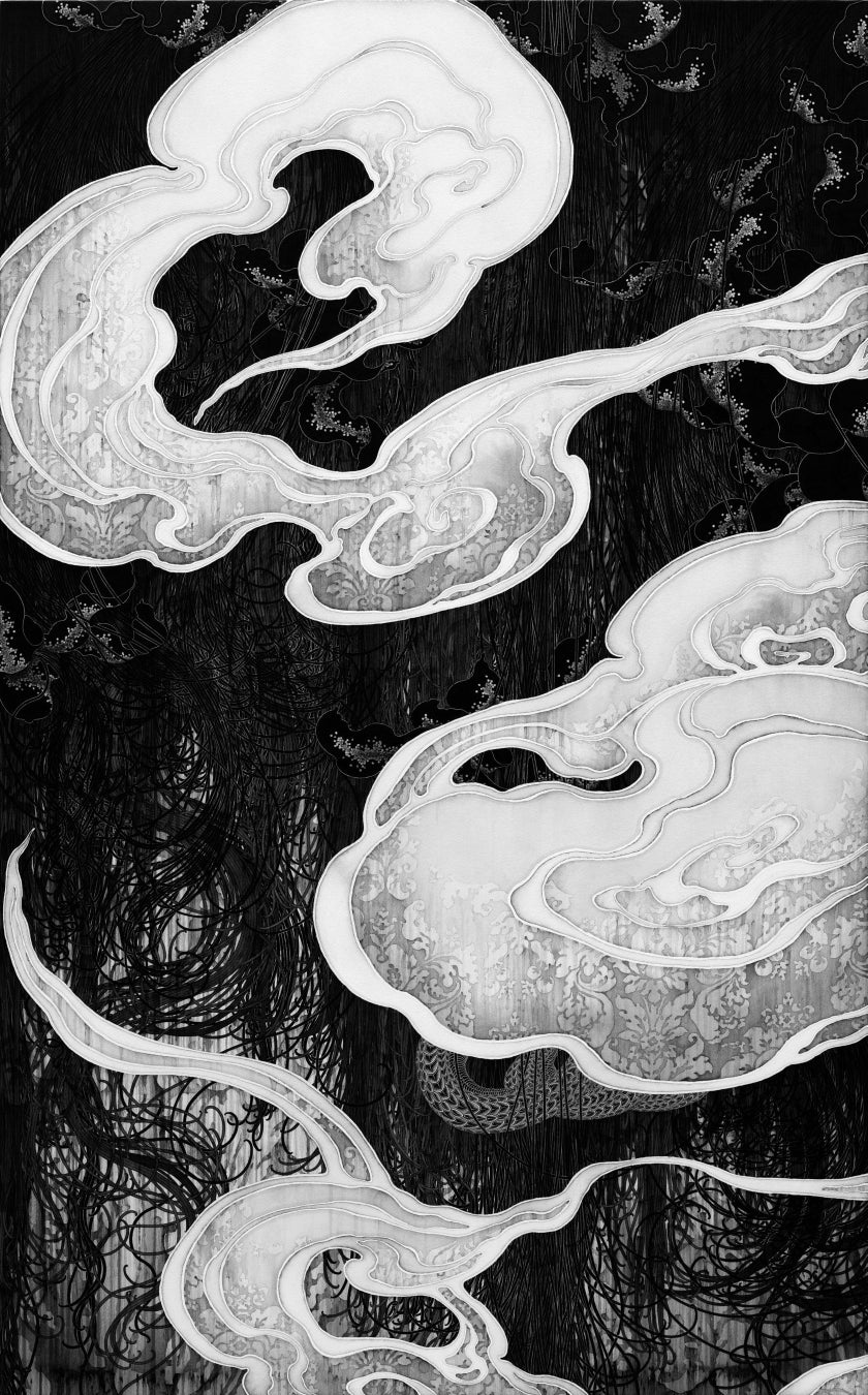 【銀座 蔦屋書店】ましもゆきの個展「花轍」を2月17日(土)より開催。緻密な筆致で欲望と妖しさが交差するモノクロの世界を描く。