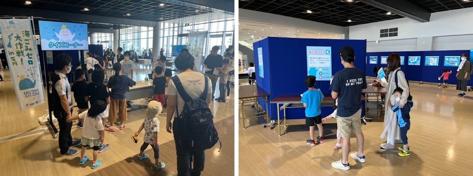 - 「楽しみながら海洋ごみを学ぶ」学習パネル、クイズコーナーに多くの家族連れ