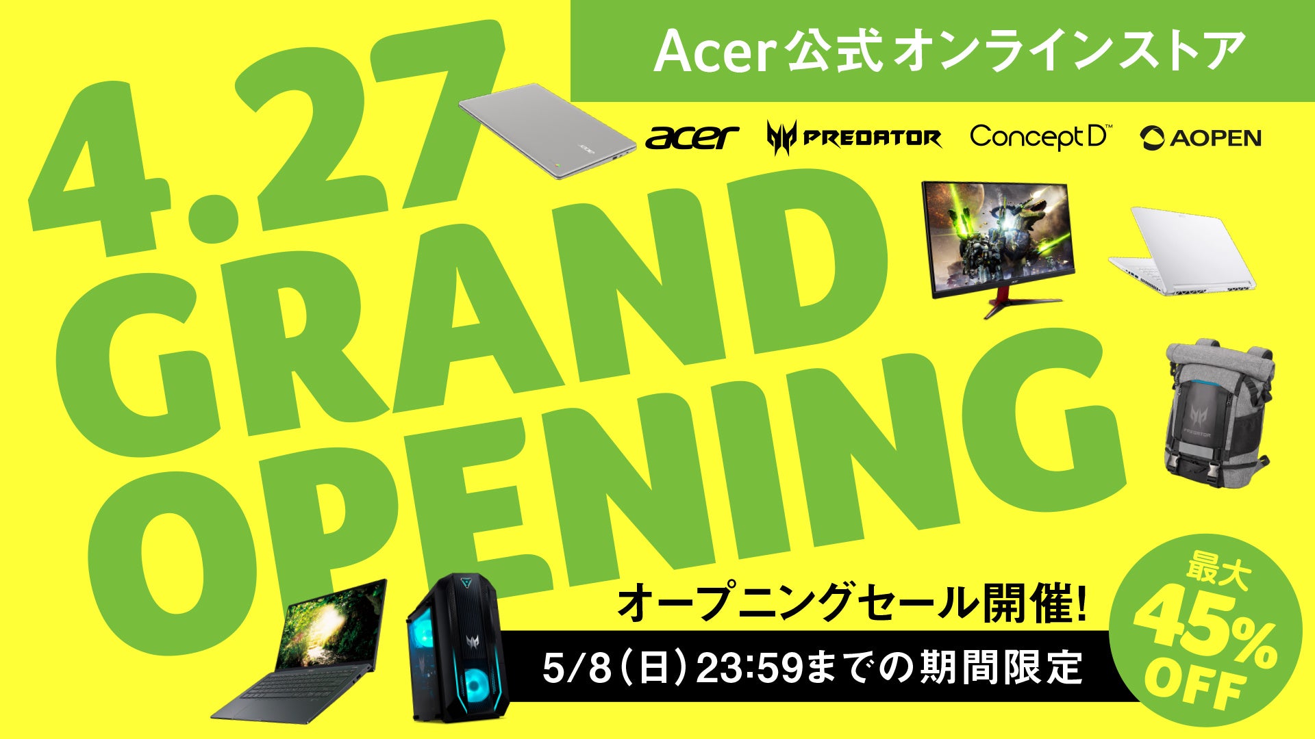 Acer 公式オンラインストアが4月27日にグランドオープン!最大45%オフのグランドオープン記念セール開催!