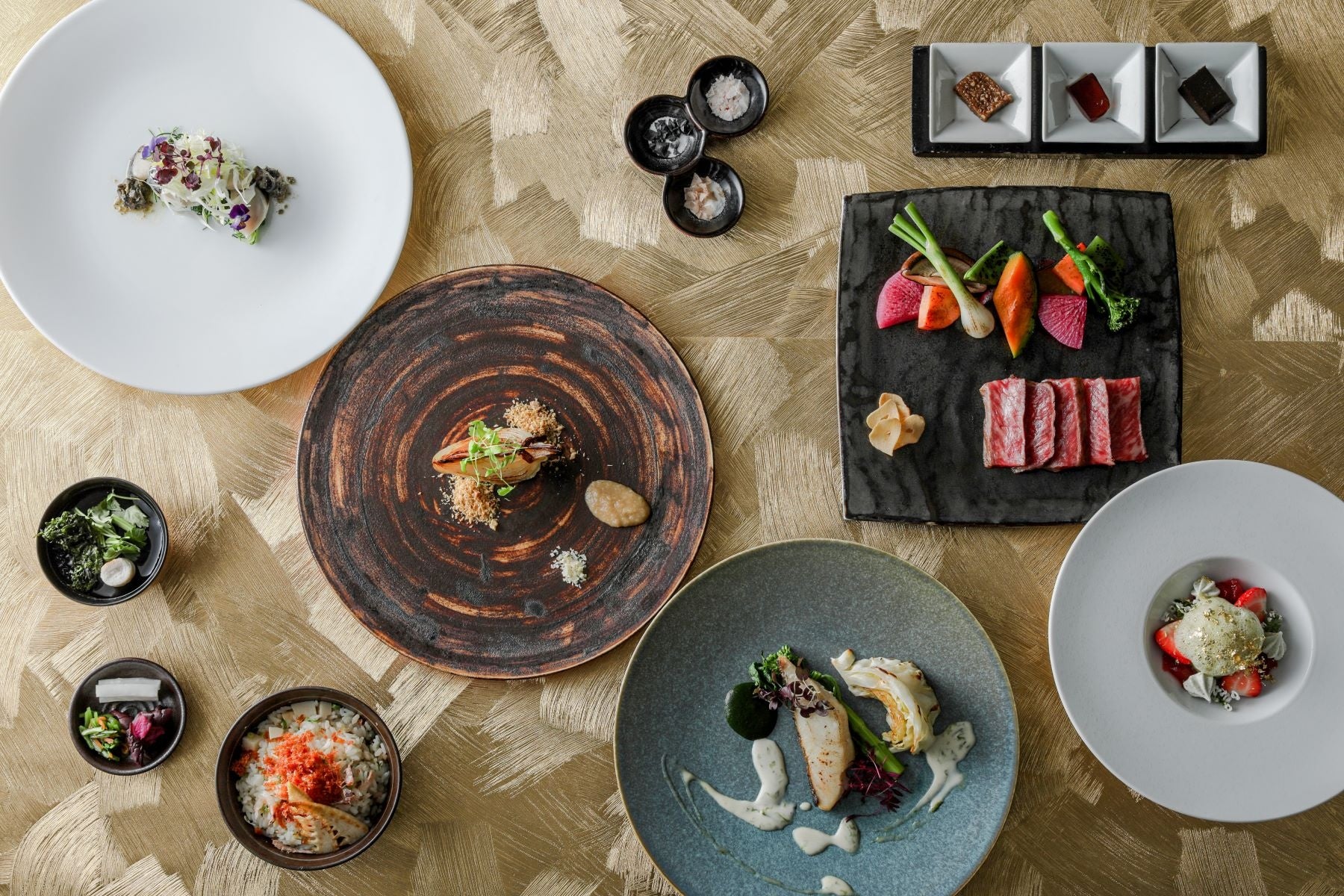 海の幸は“縞鯵”や“真鯛”を、メインのお肉には良質な肉質が特徴の“伊勢水沢牛”を使用。魚料理は+5,500円で“伊勢海老”に、肉料理は+5,500円で“松阪牛”に変更も可能。厳選された食材を目の前で仕上げる、極上の鉄板焼コースをご堪能下さい。