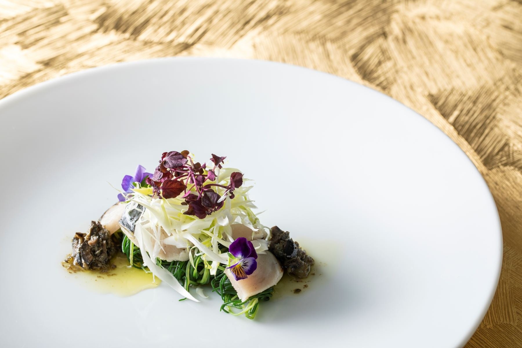 ・前菜:三重県産縞鯵の炙り オリーブのコンディメントとともに
