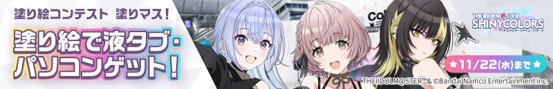 総勢28名のアイドルの塗り絵コンテストを開催します。コラボユニットのコメティックは特別な新衣装で登場します。入賞者にはPCや液晶ペンタブレット、関連グッズなど豪華賞品がプレゼントされます。