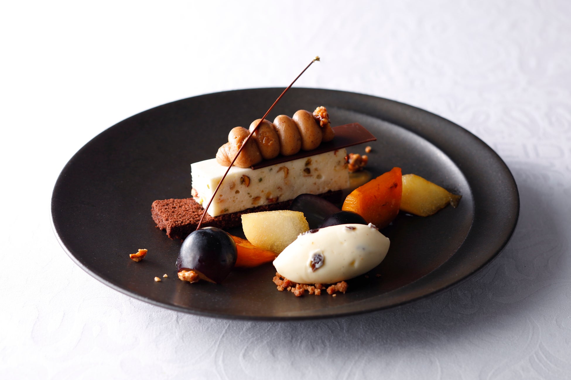 ◆『キャラメルナッツのヌガーグラッセ 旬の秋のフルーツのソテー ラムレーズンアイスクリームと共に』 2,700円
