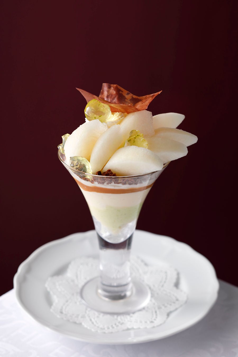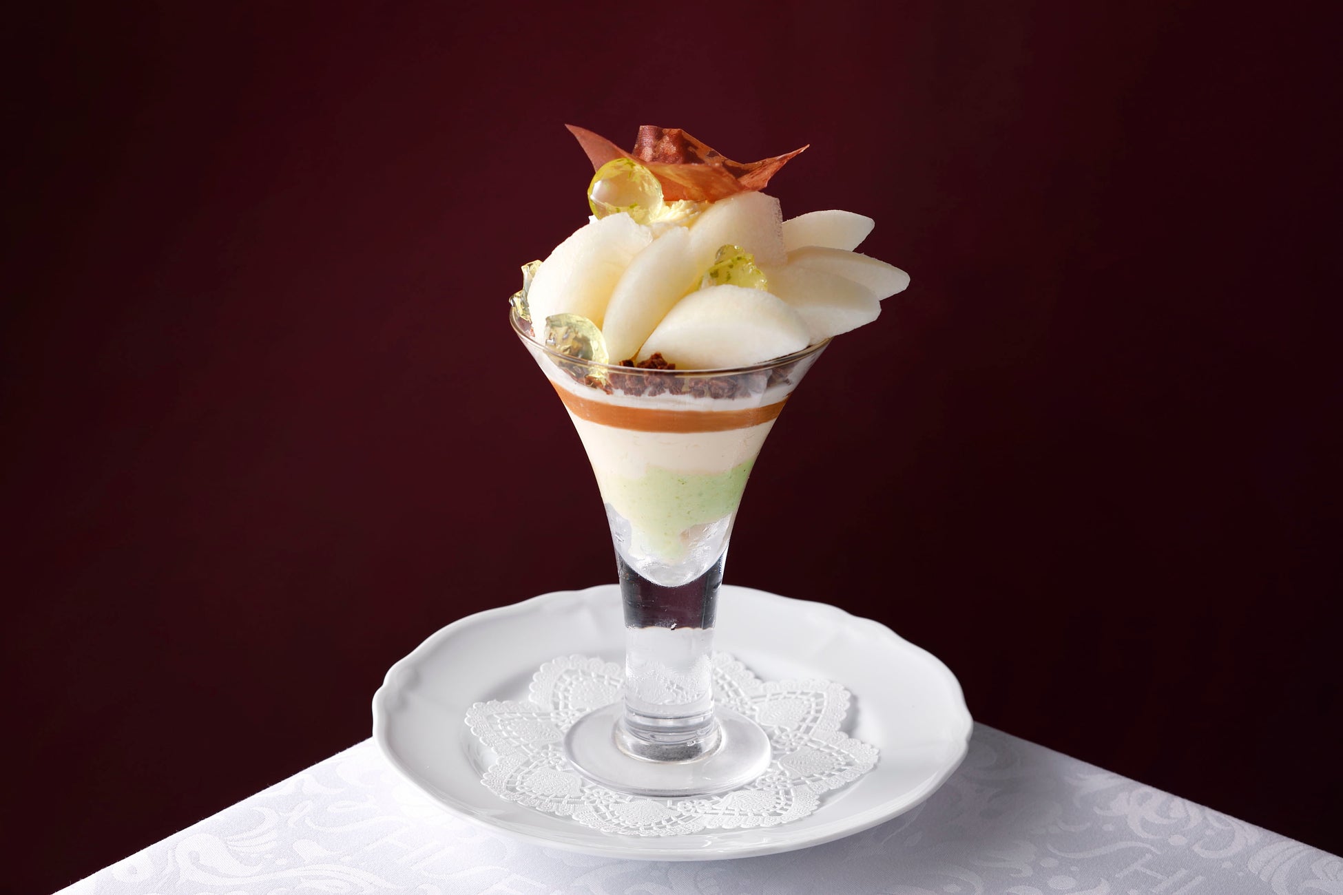 なめらかな口当たりと上品な甘さが魅力で、酸味も少なくジューシーな和梨“加賀しずく”を使用したパフェです。キャラメルソースとのマリアージュをご堪能ください。