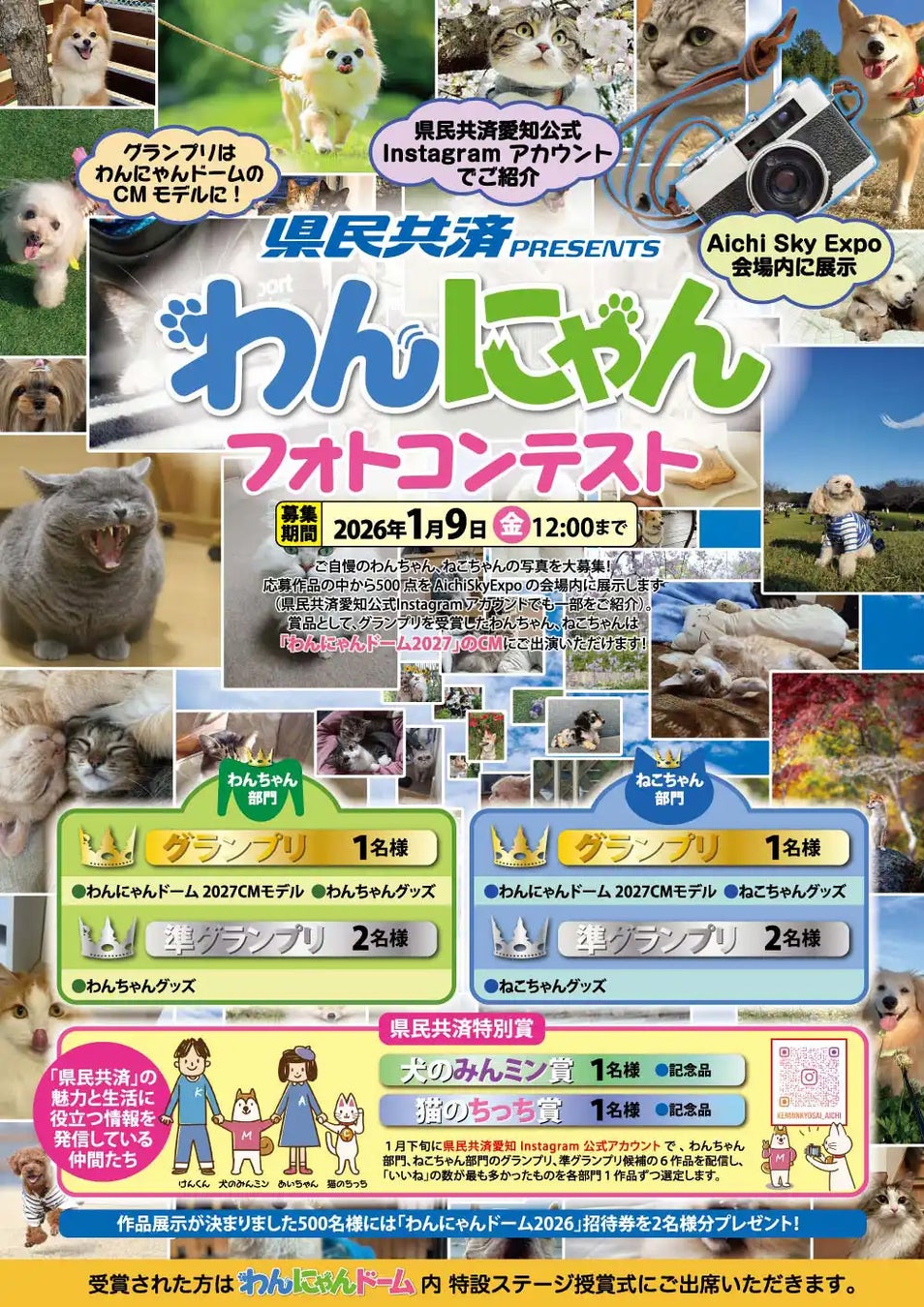 グランプリはCMデビュー!さらに、選ばれた500点は「わんにゃんドーム2026 in Aichi Sky Expo」会場に展示されます。