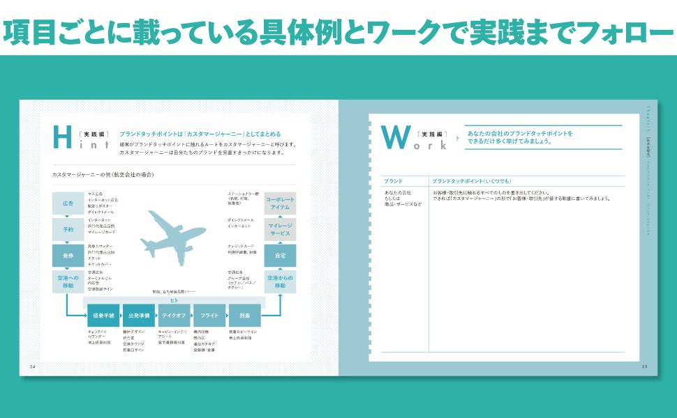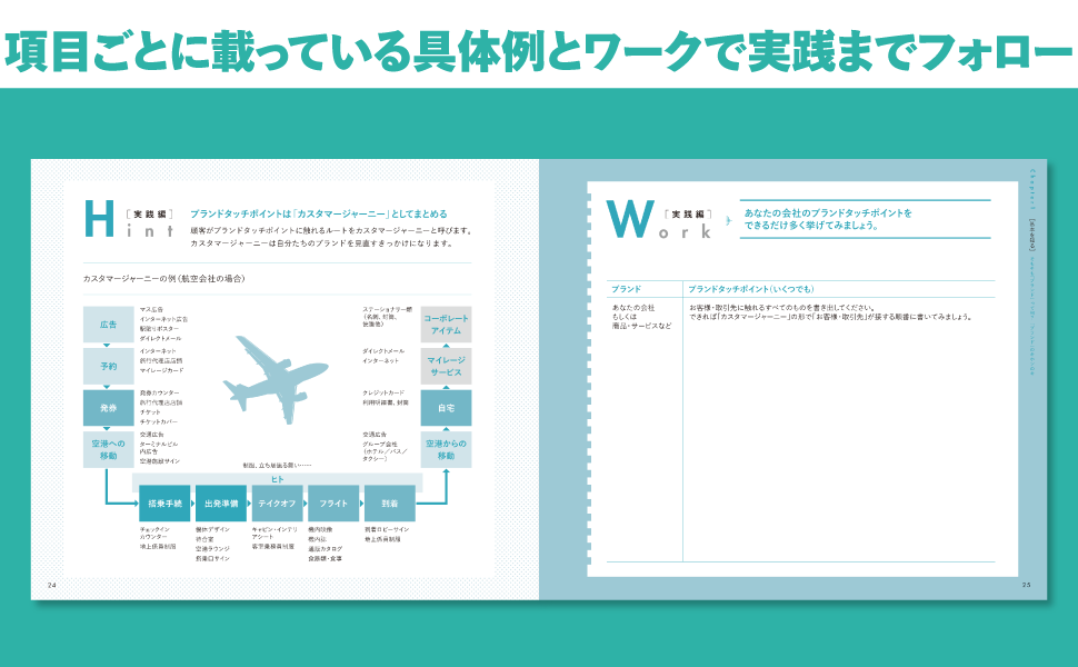 理論として、「ブランド」「ブランディング」の知識やノウハウを文章と図表で分かりやすく解説。そして、実践の際に参考にしてほしいことを「Hint」として紹介しています。各項の最後には「Work」のページを設けました。最初からひとつずつ回答していくと、最終的には自分たちの会社・組織・製品などの「ブランディング」ができ上がる仕組みになっています。ぜひ、チャレンジしてみてください。