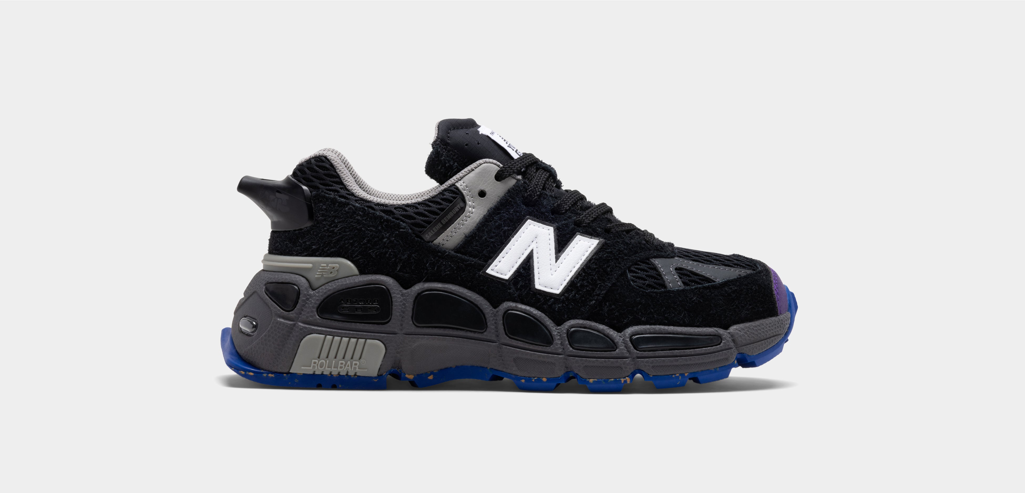 ニューバランスのアイコン的存在である「574」は、80年代に発売されたオフロードシューズの「576」のDNAを受け継いだモデル。サレヘ・バンバリーとのコラボレーションモデル「574 YURT」は、「574」が持つシルエットを生かしながら、アッパーには「Test Run 3.0」や「990v3」、「755」など過去のアーカイブシューズの要素を採用しています。スタイリッシュかつ機能的なトレイルシューズである「574 YURT」は、アウトドアでの安全性とサバイバル性を強調するため、フットウェアとしては初めて、かかと部分に緊急時用のホイッスルを搭載した遊び心溢れるデザインです。アッパーには通気性に優れたエアーメッシュとヘアリースエード採用し、ソールには衝撃吸収性に優れたABZORBと安定性に優れたRoll Barを搭載したボリューム感溢れるニューソールを採用しています。