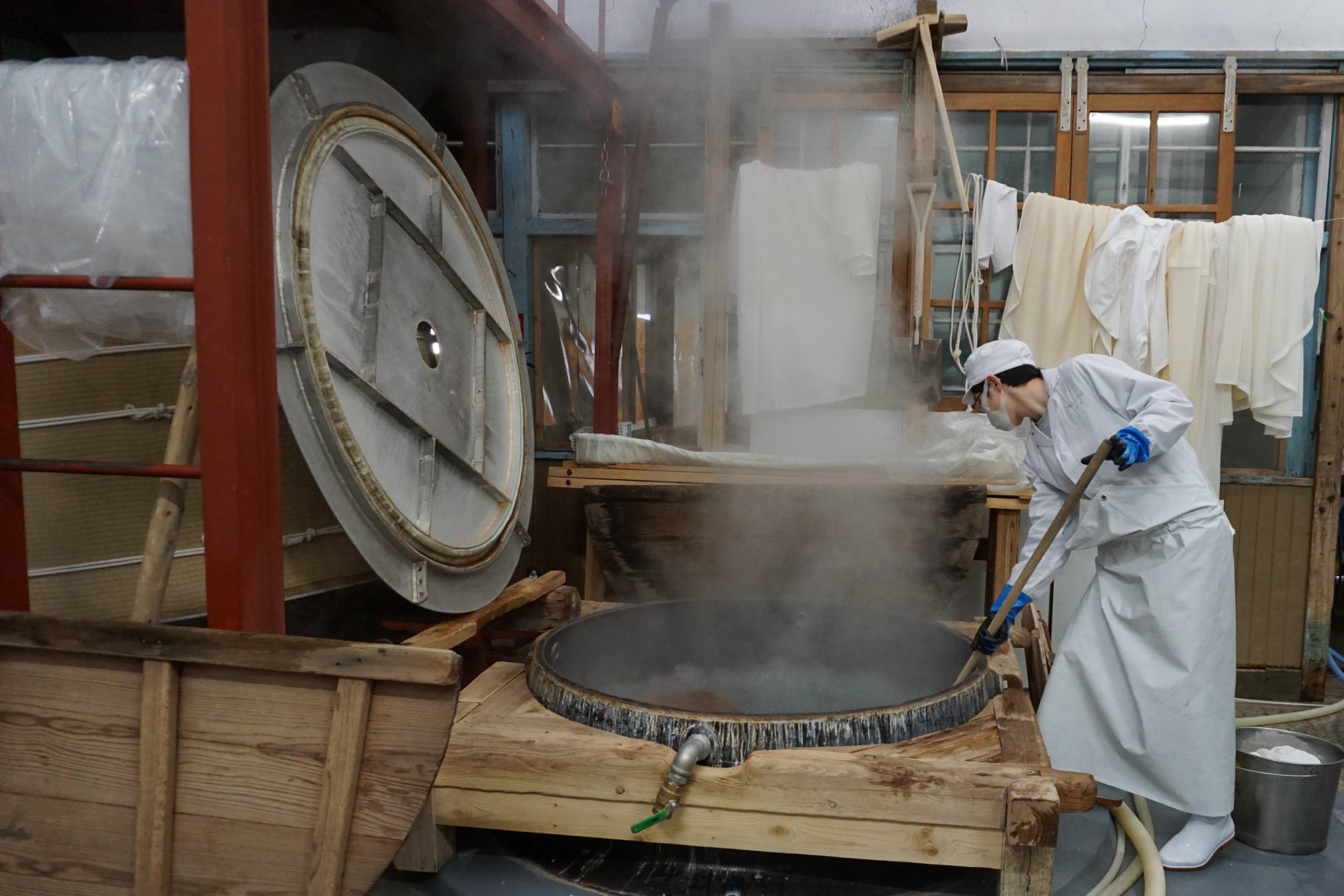 仕込みに、昔ながらの木桶を使用する木桶仕込み。微生物は木桶に馴染みやすく、いい日本酒が生まれるとされる。