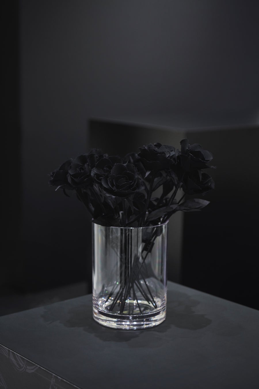 服の残布でつくられたファブリックフラワー。ギャバジンウールやジャカード生地などY'sの象徴的な生地をもちいて表現された。