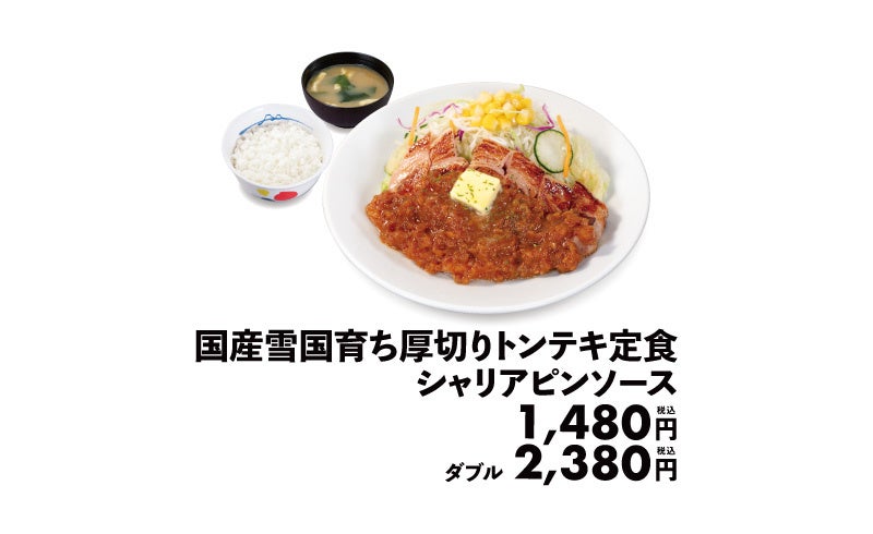 このたび松屋フーズ(本社:東京都武蔵野市、代表取締役社長:瓦葺一利)では、牛めし・カレー・定食・その他丼の「松屋」におきまして、2025年7月1日(火)10時より「国産雪国育ち厚切りトンテキ定食シャリアピンソース」を販売いたします。