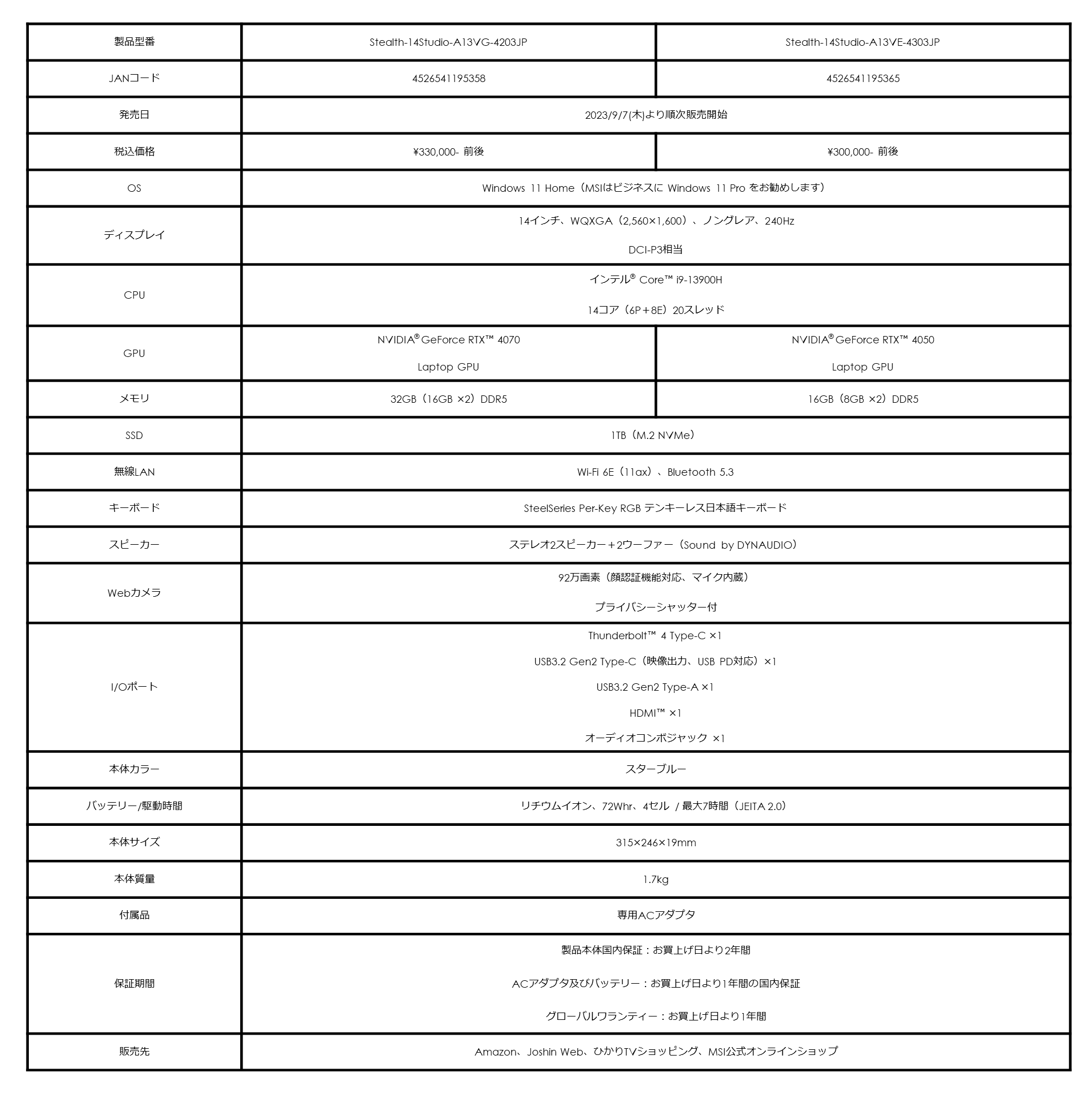 ・Stealth 14 Studio A13V 製品ページ:https://jp.msi.com/Laptop/Stealth-14-Studio-A13VX