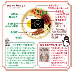 オレンジページがプロデュースするSuicaのペンギン弁当として第5弾となる今回は、”乗務員の賄いめし”をイメージした「ハチクマライス」と大宮のご当地グルメ「大宮ナポリタン」を盛り込み、Suicaのペンギンの好物でもある魚肉ソーセージの磯辺揚げも入った「鉄道のまち大宮」の新名物弁当に仕上げました。