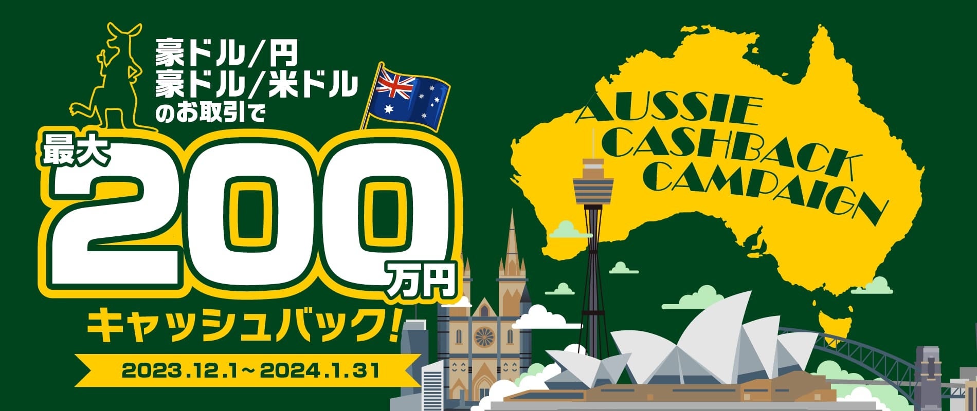 【みんなのFX】豪ドル/円・豪ドル/米ドルの取引に応じて、最大200万円をキャッシュバックするキャンペーンを実施します!