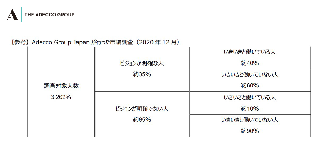 “Does Employee Happiness Have an Impact on Productivity”(2020年11月9日)と、ADECCO GROUPのビジョンマッチング市場調査分析報告書(2021年2月)を用いて計算。