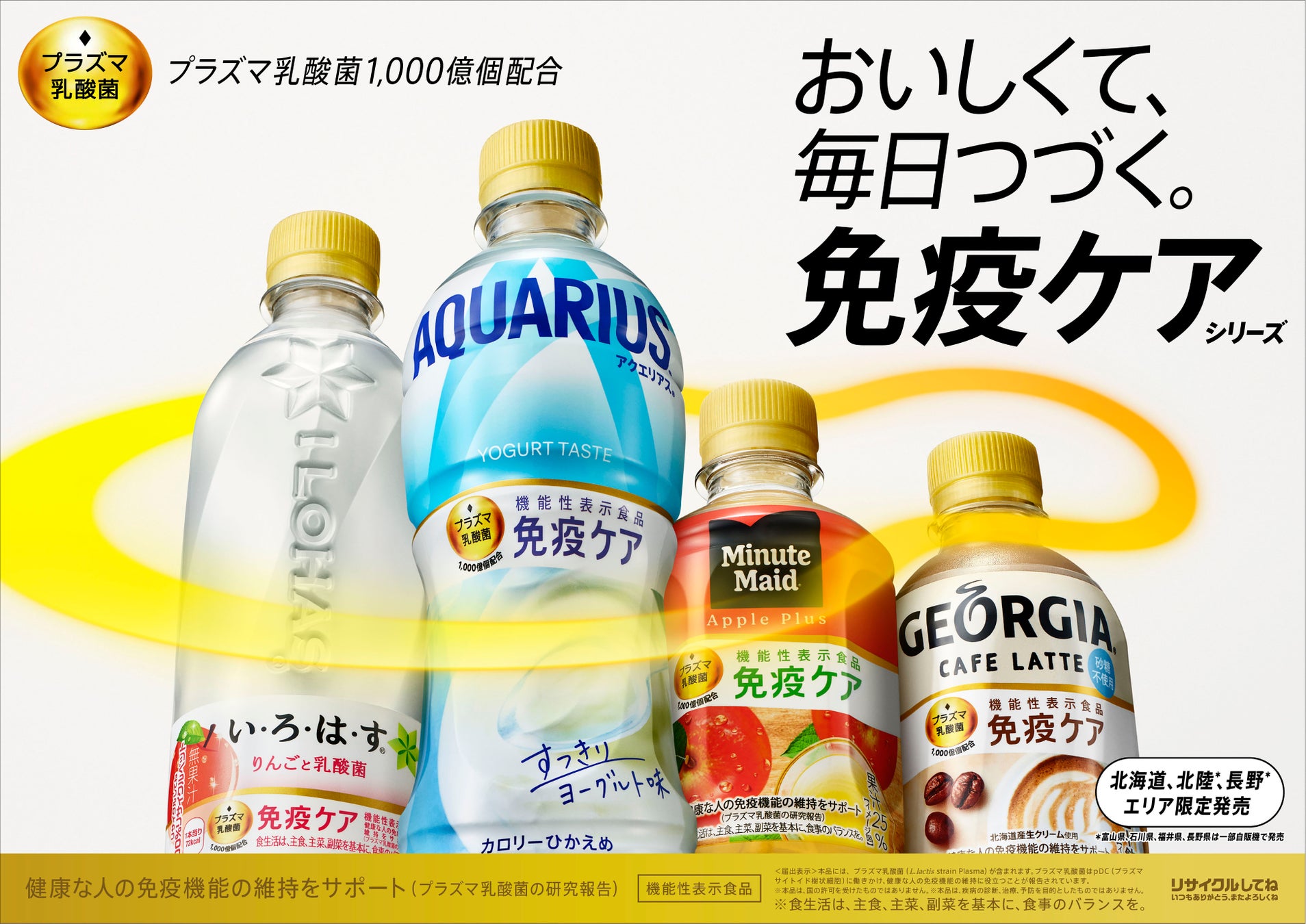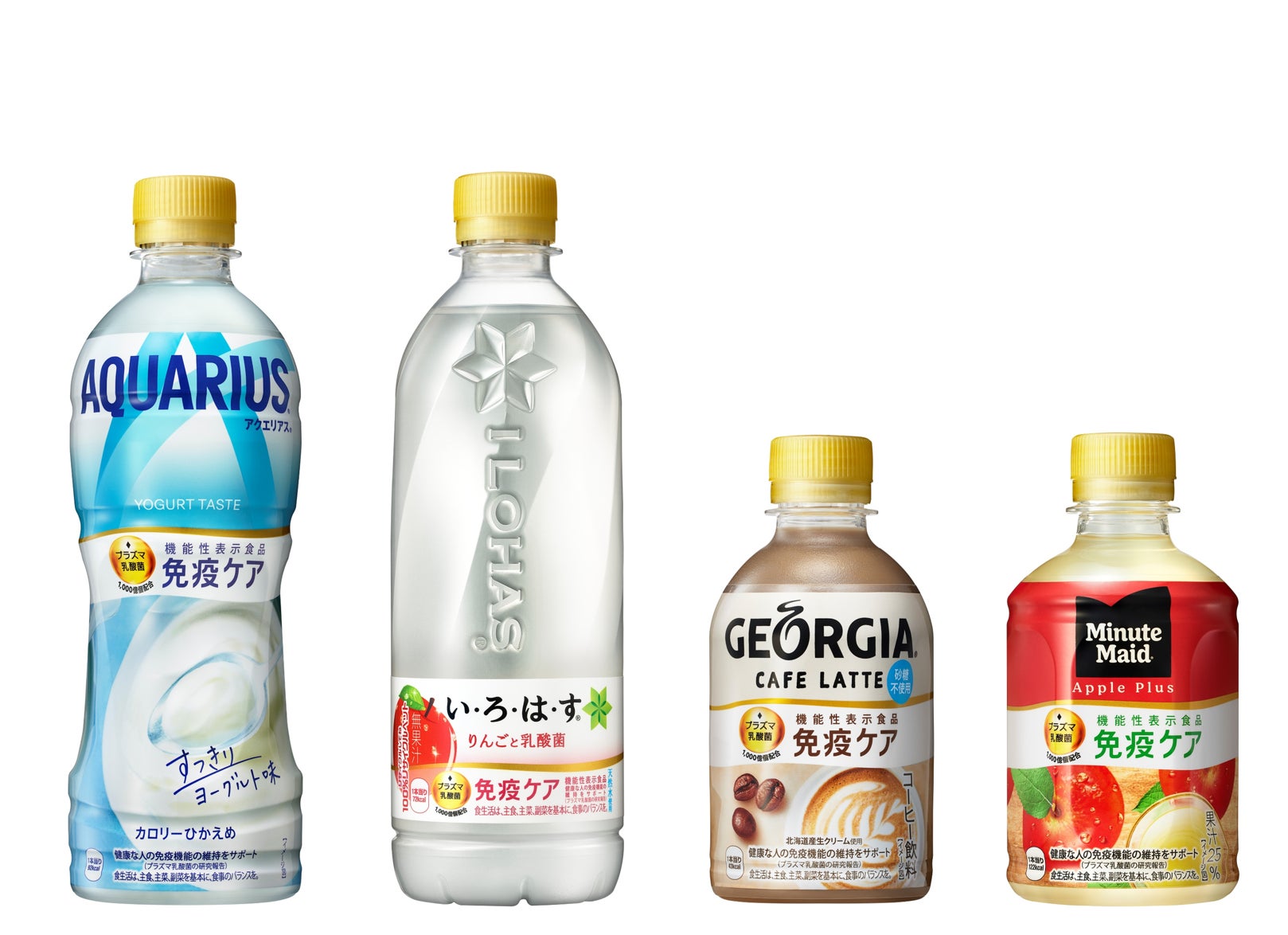 おいしく、手軽に健康維持をサポート「アクエリアス」、「い・ろ・は・す」、「ジョージア」、「ミニッツメイド」から「コカ・コーラ社 プラズマ乳酸菌 免疫ケアシリーズ」が新登場