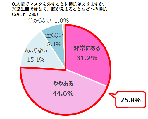 マスクをとったとき、⼝元は顔印象に影響⼤!?マスクを外すことに対して、7割以上が⾒た⽬での抵抗感あり!