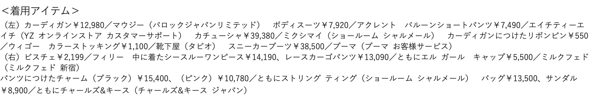 ブランド:9090 girl、AZUL BY MOUSSY、Darich、DOUBLE STANDARD CLOTHING、GYDA、HTH、LAGUA GEM、microwave、MILKFED.、moment+、MOUSSY、NAOKI TAKIZAWA、SLY、WEGO ※アルファベット順
