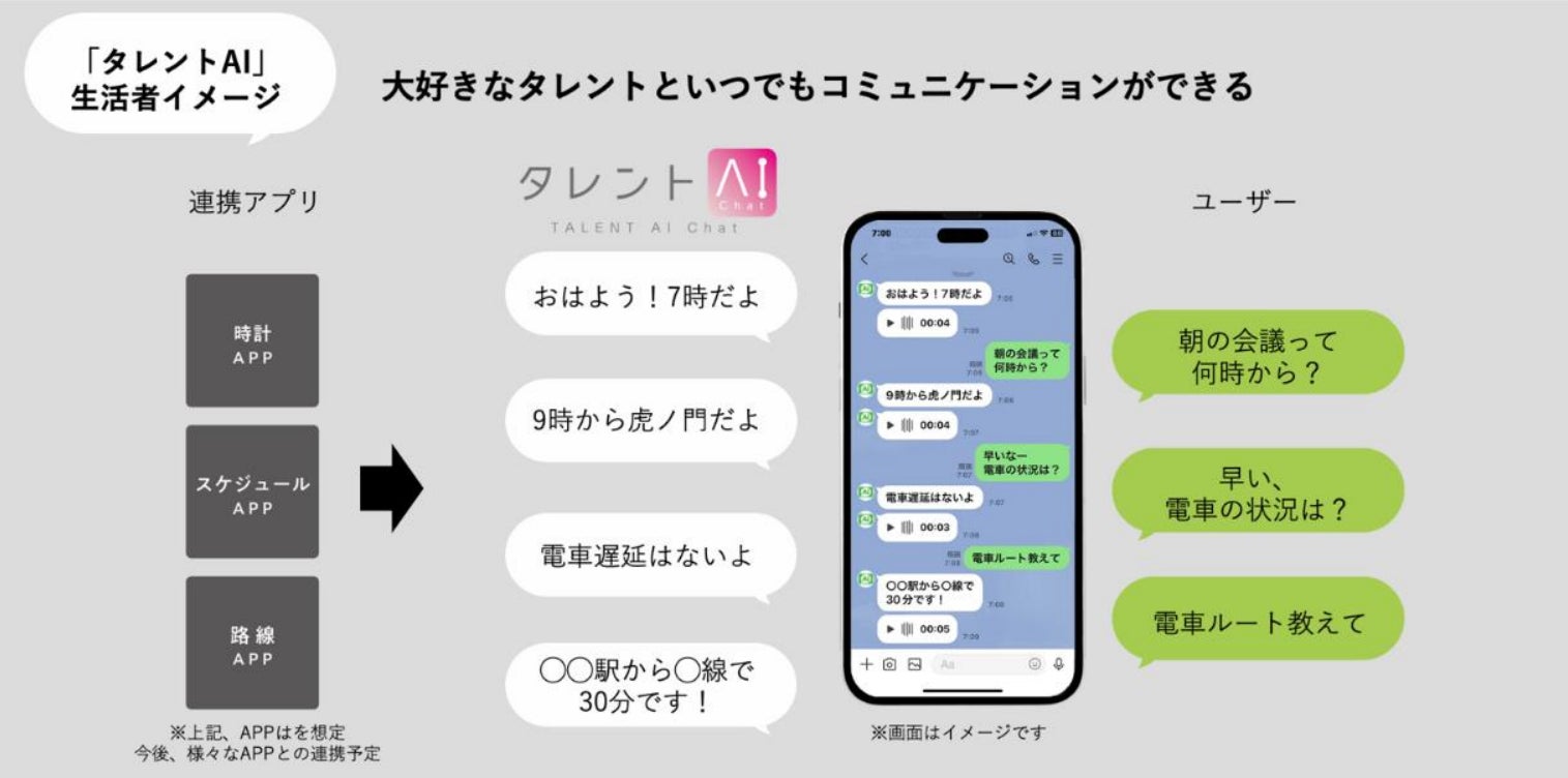 また、食事管理アプリ「あすけん」とデータ連携し、参加者がより健康的な生活ができるよう「AIおーじくん」がLINE上で参加者それぞれに合わせた応援をしてくれます。この機会に「タレントAI Chat」での新しいコミュニケーションを体験ください。